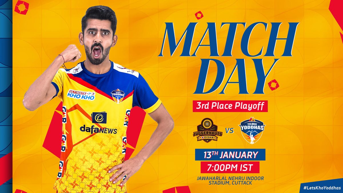 Telugu Yoddhas, the GMR Group-owned team, will aim to end their season on a high by securing a podium finish when they face the home side Odisha Juggernauts in the third-place match of Ultimate Kho Kho Season 2.