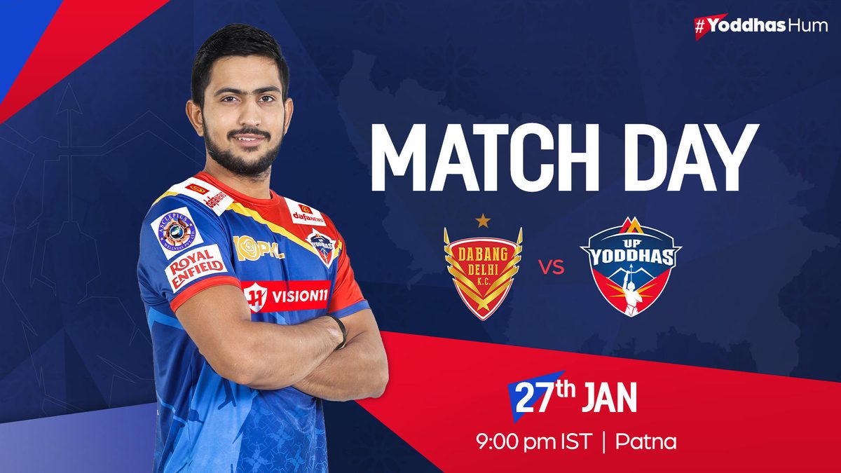 U.P. Yoddhas, the GMR Group-owned team, aims for a win in their reverse fixture against Dabang Delhi K.C. in Match 92 of Pro Kabaddi 2023-24, played here at the Patliputra Indoor Stadium.
